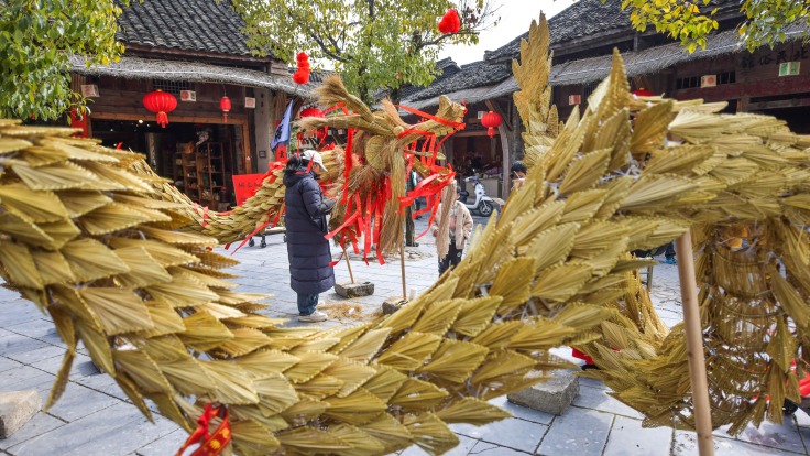 桂林灵川:东漓古村草龙迎新春 传统非遗“活”起来