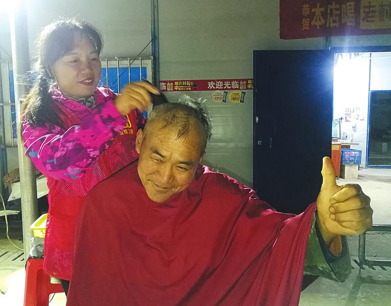 当晚,补鞋修伞和义务理发最受欢迎。听说有理发服务,一些工友甚至连工装都没来得及脱就来了。“我们下工地干活很热,给我理个光头干活时爽快。”一名工友乐呵呵地说,还竖起大拇指为志愿者的服务点赞。