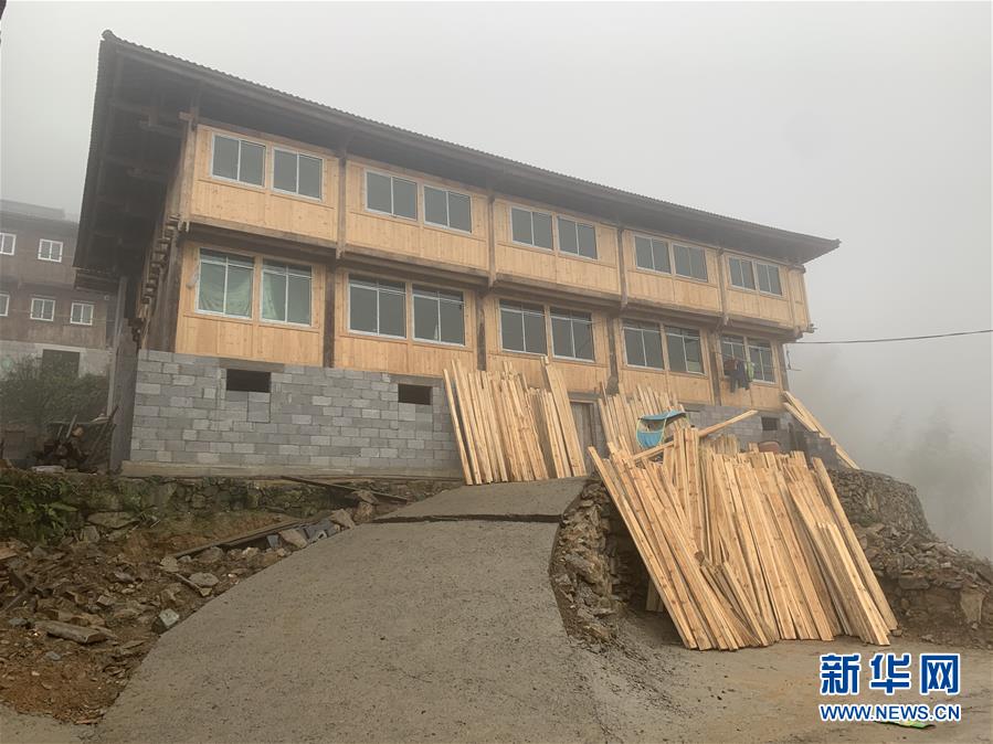 广西环江毛南族自治县龙岩乡达科村邓家屯村民邓秀连正在装修的新房(1月20日摄)。新华社记者 陈一帆 摄