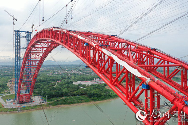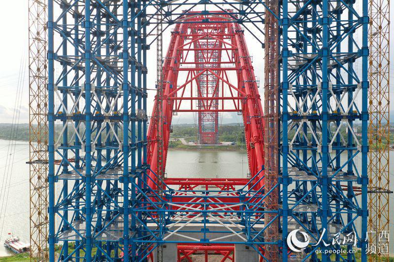 人民网平南5月13日电 5月12日晚,世界在建最大跨径拱桥平南三桥全桥主弦管管内混凝土灌注顺利完成,同时也标志着全桥重大技术难点攻关完成。