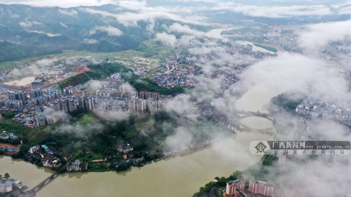 广西新闻网三江5月24日讯(通讯员 龚普康)连日来,三江侗族自治县受持续降雨影响,雨水停歇后出现云雾缭绕的迷人风光,无人机镜头下,县城、楼桥、河流、路网、动车等在云雾的映衬下格外梦幻,美如仙境。近年来,三江持续做好生态立县、旅游富民文章,深入推进“河长制”“林长制”,不断巩固提升“国家生态文明建设示范县”成果,全力建设宜居宜业宜游幸福新三江,助力侗乡全面推进乡村振兴。