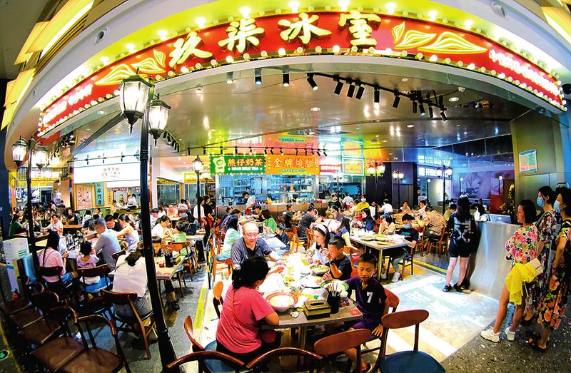 周末很多市民来逛商场吃饭,餐饮店顾客盈门