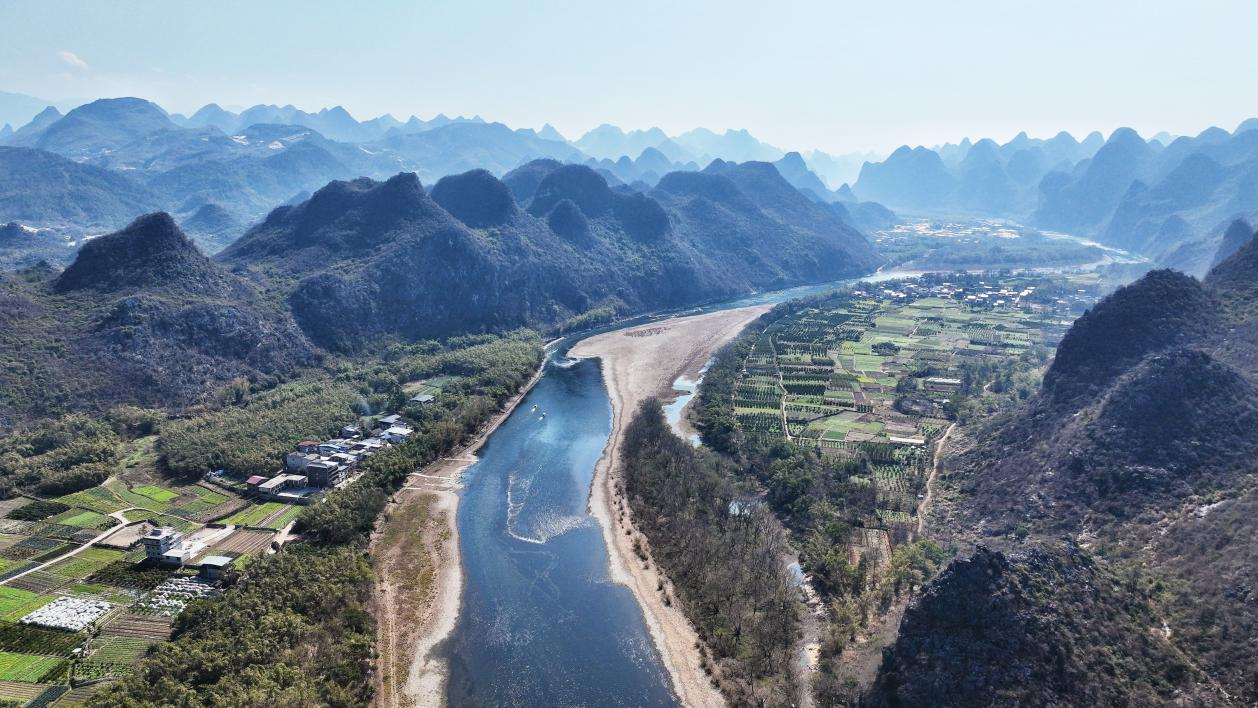 据介绍,该乌桕滩位于漓江边上的一个大江滩处,江边的沙石上自然生长着一棵棵乌桕树,形成乌桕林,在整个河滩蔓延。从高处俯瞰,漓江江水清澈,两岸山峰秀丽,不远处房屋与农田交错,宛若一幅诗意盎然的山水画卷。(文 林姗婷)