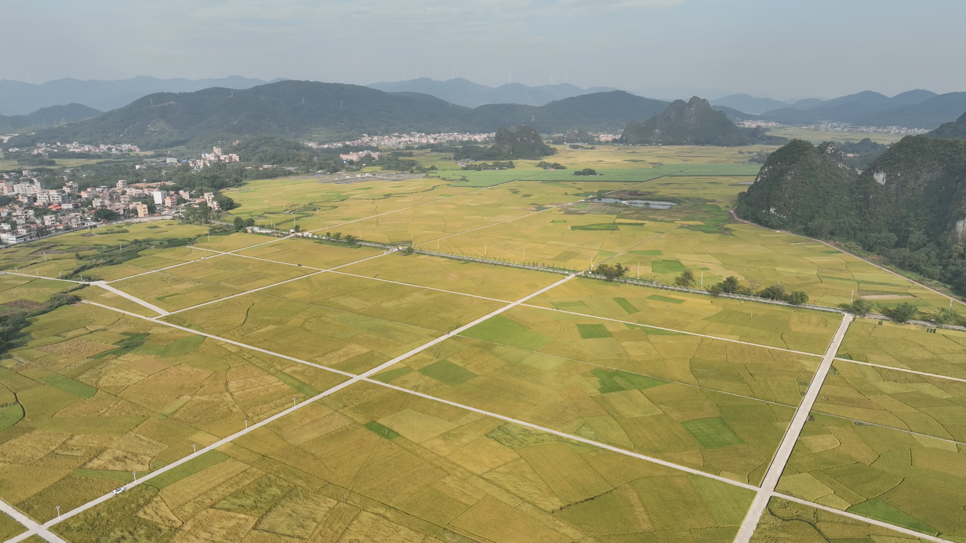 兴业县的广袤田野上,整齐连片的高标准农田构成了丰收的底色。数台收割机开足马力,在田间来回穿梭,展现出现代农业的崭新气象。石南镇马塘村农户莫春妮感慨道,以前田块很分散,现在平整很多了,路也好走多了,她今年承包了300多亩田来种,收割机可以直接下田,施肥可以用无人机,效率提高了很多,收成也更稳定了。
