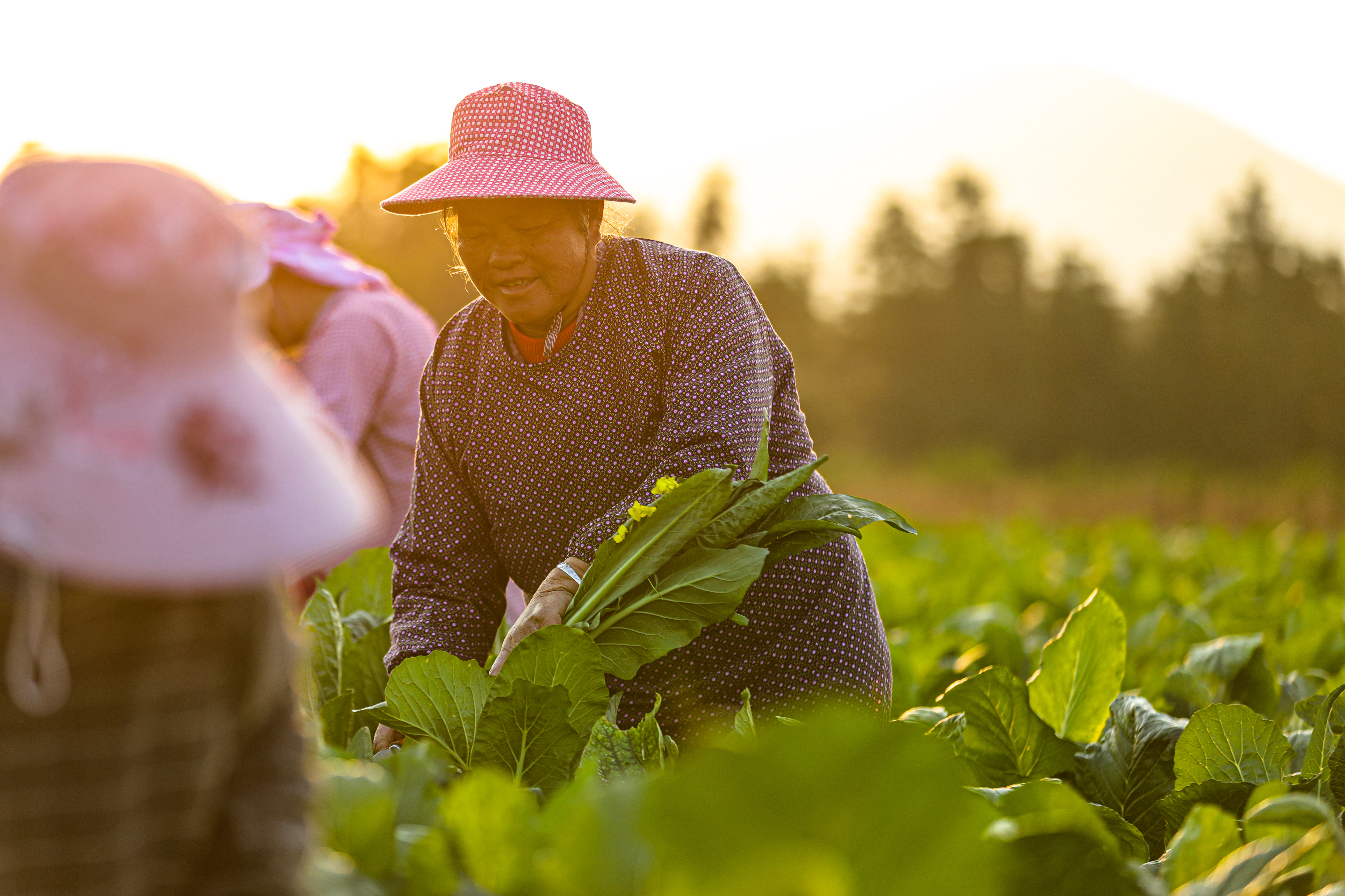村民正在田间采摘迟菜心 摄影 阳海翔