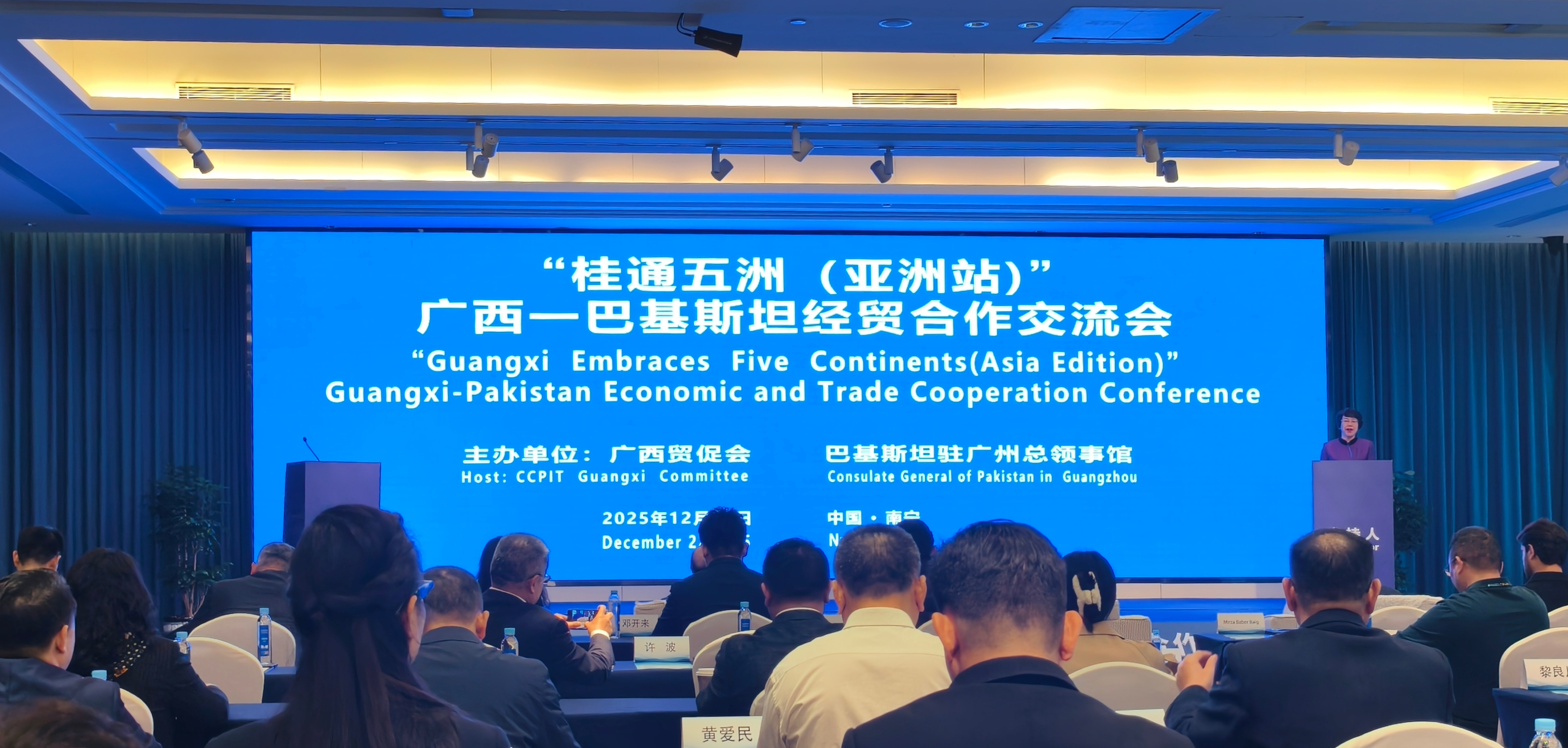 “桂通五洲”是广西贸促会推动桂企桂品拓展国际合作的对外交流品牌,2025年以来,已成功举办了日本、埃塞俄比亚、巴西、以色列、沙特阿拉伯、刚果(金)等国别专场活动,促进中外企业务实合作。本次交流会是广西深化与“一带一路”共建国家经贸交流的有力举措,是继去年8月与巴基斯坦驻广州总领事馆举办经贸合作推介会后的再次合作,将进一步推动广西与巴基斯坦的交流合作,不断推进双边经贸合作向更广领域、更深层次发展,推动双方在“一带一路”倡议下实现共同发展。(文 苏英明)