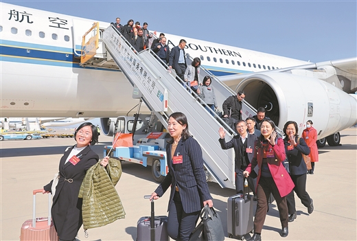 肩负重托,共商国是。3月3日,在桂全国人大代表从南宁飞抵北京,出席即将召开的十四届全国人大二次会议。