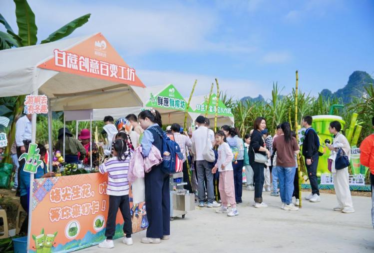 本次活动深度融合当地甘蔗资源与壮乡文化,推出甘蔗创意工坊、甜蜜邮局等特色内容。游客可体验鲜榨蔗汁、手工编织,参与明信片盲盒交换,在互动中感受民俗趣味。
