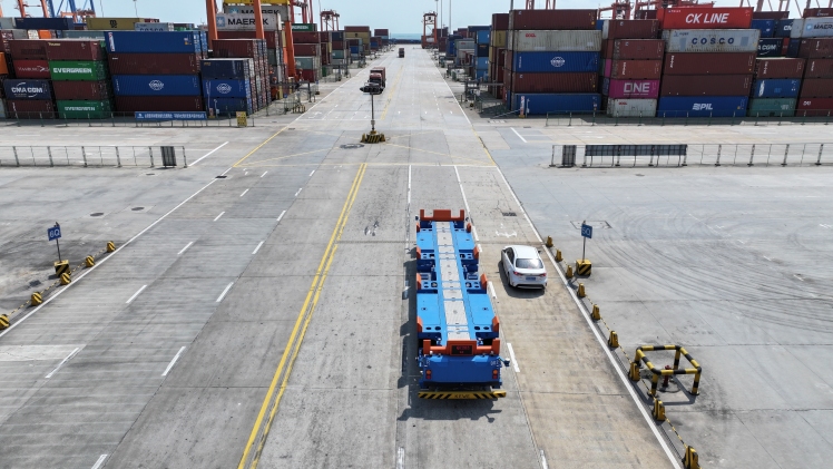 目前,项目进展顺利,2024年底复合导航IGV抵港并完成关键测试,2025年4月在自动化集装箱码头内实现常态化混行,9月完成自动化码头到人工码头的跨域运输测试,其中复合导航IGV与传统码头轮胎吊的自主对位交互成功率超95%,停车精度达±5cm。2026年建成后将显著提升码头运营效率,海铁倒运与码头间互拖环节预计分别节约12分钟、6分钟,带动整体跨域中转效率提升超过10%,为码头绿色低碳发展注入强劲动力。