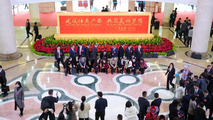人大代表步入广西人民会堂 摄影 林姗婷