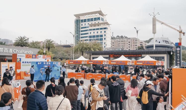 一旁的趣味游戏区欢声笑语不断,消费者通过轻松有趣的互动环节,快速识别各类走私物品、掌握基本的反走私知识,引导消费者自觉抵制走私物品,从源头阻断走私物品流入市场。现场特别设置的互动打卡区,让消费者积极通过社交媒体分享反走私活动内容,从“旁观者”转变为“参与者”,扩大反走私活动的宣传范围,吸引更多消费者参与到活动中、了解反走私知识。互动环节还准备了多样反走私联名礼品,吸引市民积极参与,让市民在趣味互动中了解反走私知识。