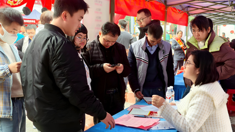 2月26日,2026年南丹县“春风行动”暨就业援助季大型招聘会在广西南丹县举行,来自浙江永康、广东佛冈以及广西区内的69家优质企业携6000余个岗位进场招聘,吸引当地3000多名求职者进场求职。