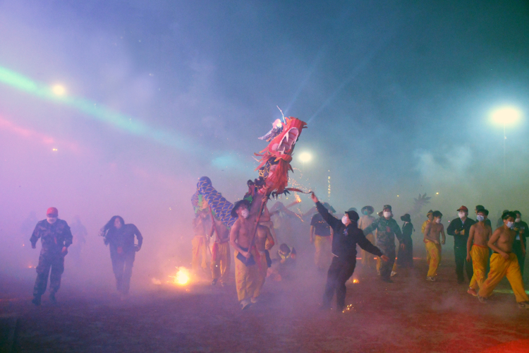 炮龙在烟火光影中狂舞 摄影 黄日强