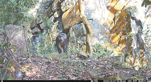 记者从广西林业部门获悉,近日,广西大平山自然保护区在红外相机监测数据中,首次记录到国家二级重点保护野生动物藏酋猴的清晰野外活动影像,标志着广西又新增一处藏酋猴分布点。