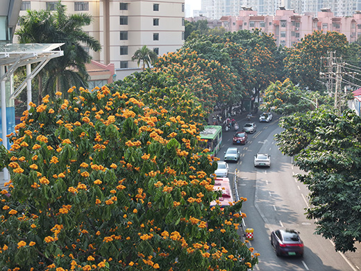 南宁市园湖路无忧花盛开,金黄花朵惹人醉。 广西云-广西日报记者何兴强/摄