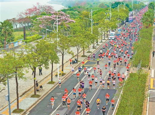 三月二十二日,南宁半程马拉松开跑,来自全国各地的一万两千名跑者以脚步丈量绿城春光。刘峥/摄