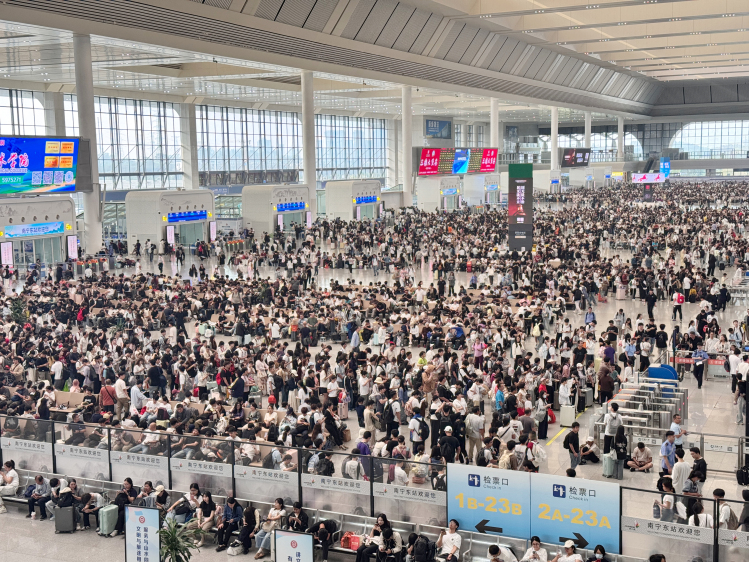 清明节期间,南宁东站候车大厅人潮涌动 摄影 于莉